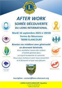 Nous vous invitons à venir nous rencontrer le mardi 16 septembre 2025 à 19H30 à la ferme du Mousseau 78990 ELANCOURT.