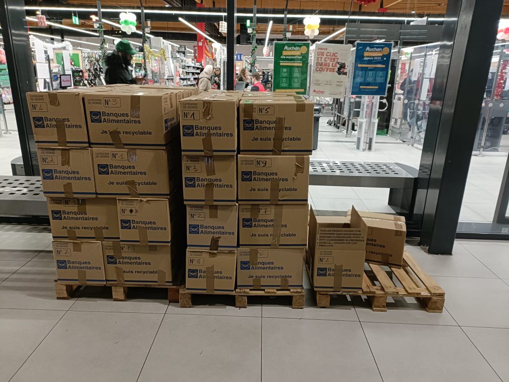 Un petit retour sur la journée nationale de collecte alimentaire. Nos collectes du 22 et 23 novembre ont été bénéfiques. Un grand merci à tous les donateurs qui malgré les intempéries ont répondu présents et merci aux participants de cette action. 111 cartons ont été récolté, dont 64 cartons à Auchan et 47 à LIDL soit environ 1800kg de denrées et divers. Merci à toutes et tous.
